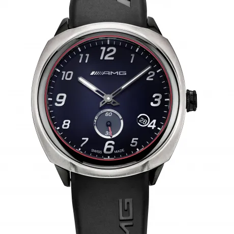 O AMG Business Automatic Chronograph é feito para aqueles que vivem e respiram performance. Seu design combina tecnologia com emoção e esportividade com sofisticação clássica. O item central do relógio é o calibre automático suíço SW500 da Sellita e, o movimento, com acabamento Côtes de Genève e perlage, pode ser admirado por meio da tampa traseira em cristal de safira.