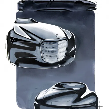 A dianteira do Vision Iconic é definida pela grade icônica como uma homenagem marcante e visionária à tradicional grade cromada, que, como elemento chave de design, moldou a Mercedes-Benz por mais de 100 anos. O elemento emblemático é inspirado nas grades verticais de modelos lendários, como o W 108, W 111 e o Mercedes-Benz 600 Pullman.