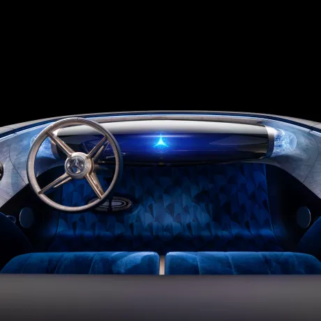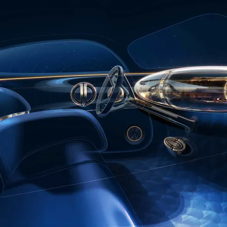 Com a condução automatizada, o interior do automóvel está evoluindo e uma introdução desse futuro é o conforto estilo lounge e a experiência inteiramente nova de luxo hiper analógico e digital. O interior do veículo redefine a sofisticação automotiva por meio de uma composição com artesanatos e materiais exclusivos inspirados no movimento artístico Art Déco. O ponto central do painel de instrumentos é uma estrutura flutuante de vidro, chamada “Zeppelin”, que é uma forma artística de revelar um interior fascinante, com detalhes artisticamente projetados e uma refinada interação entre instrumentos analógicos e digitais.