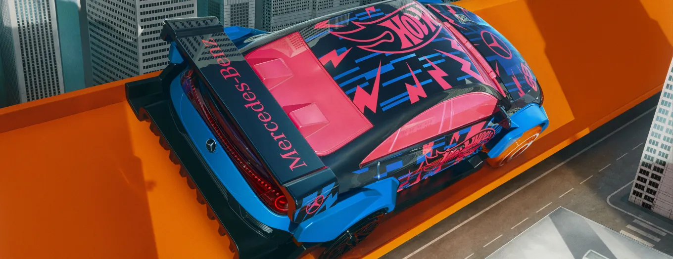 A Hot Wheels é conhecida por seu estilo lendário, com detalhes autênticos e designs imaginativos, e essa filosofia está refletida na interpretação única do Mercedes-Benz CLA apresentado como obra de arte. O projeto transforma o sofisticado CLA em um carro esportivo de fantasia, no icônico estilo Hot Wheels. O design reúne elementos característicos dos brinquedos clássicos como difusores em destaque, enormes aerofólios e traços marcantes. Essa combinação transforma o automóvel em uma homenagem à imaginação sem limites da infância, quando os carros eram mais do que um meio de transporte, mas também um convite para o mundo da imaginação.