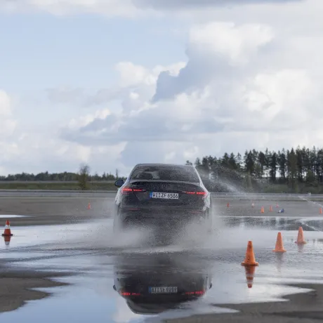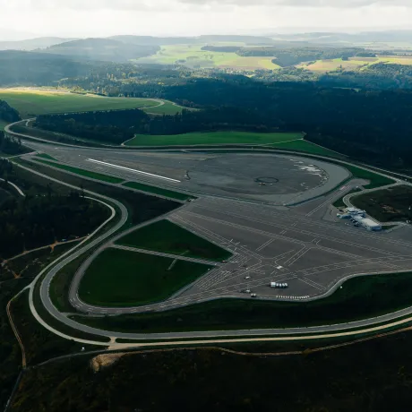 Com suas instalações de testes de alta tecnologia e métodos avançados, o Campo de Provas Global de Immendingen continua estabelecendo novos padrões na indústria automotiva. Isso inclui o chamado circuito de durabilidade automatizado Heide. Nesse teste, robôs que conduzem os veículos de forma totalmente autônoma por uma pista com terreno acidentado. Os buracos, ondulações e paralelepípedos da pista representam desafios significativos também para o chassi e a carroceria.