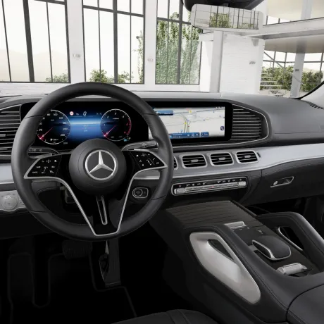 No quesito conforto e bem-estar, o GLE oferece o ar-condicionado automático THERMOTRONIC de quatro zonas, com controle independente de temperatura, além de aquecimento dos bancos dianteiros e um sistema otimizado para climas quentes. Além disso, a experiência a bordo é enriquecida pelo sistema de som Burmester® 3D, pelo Widescreen Cockpit com telas digitais integradas e pela iluminação ambiente, que inclui projeção do logotipo da marca, criando uma atmosfera sofisticada e personalizada.