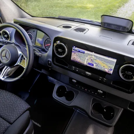 Recursos digitais sob medida, como o Mercedes-Benz Van Uptime Monitor e o Large Vehicle Navigation, tornam a manutenção e operação dos veículos mais eficientes. Graças ao MB.OS com suporte de IA, cada van contará com computadores de alto desempenho conectados à Mercedes-Benz Intelligent Cloud, possibilitando atualizações over-the-air de todo o software, inclusive dos sistemas de assistência ao motorista. Assim, os veículos permanecerão atualizados por anos, como um smartphone que recebe novos aplicativos e funções.