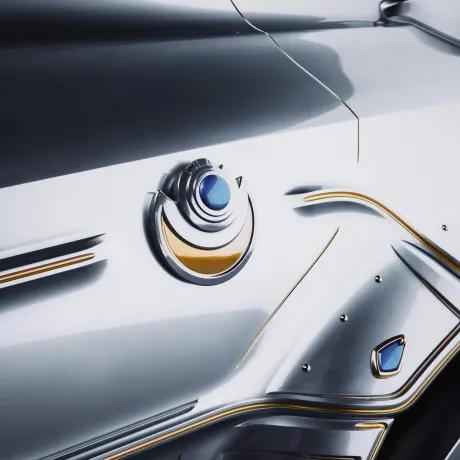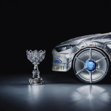 Com acabamento em cromo prateado, safiras azuis e detalhes em dourado, a obra reflete o design do novo troféu. Na estrutura do veículo, também estão gravados os nomes das equipes campeãs do Worlds de 2011 a 2024, homenageando a história do torneio, assim como as comunidades de League of Legends, esports e games. A obra simboliza artisticamente a paixão e dedicação dos fãs que tornam o esports um fenômeno global.